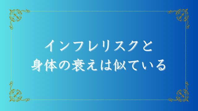 人生論 インフレリスクと身体の衰えは似ている 2025年10月13日 risshin 姿勢家立芯のブログ もし、日々の生活の中で「気付いたらお金の価値が下がっている」というインフレリスクを感じているなら、それと同じ静かな危機感が、「気付いたら身体が衰えている」という現象にも当てはまる …
