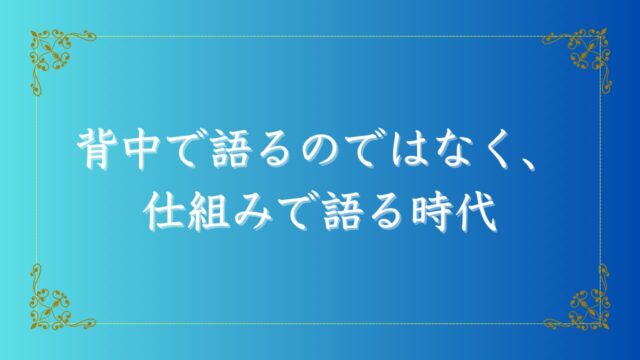 人生論 背中で語るのではなく、仕組みで語る時代 2025年10月10日 risshin 姿勢家立芯のブログ かつて、指導者は多くを語らず、「背中」で教えを伝えることが美徳とされてきました。 「見て覚えろ」「感じろ」という教え方です。 しかし、時代は変わり、今求められているの …