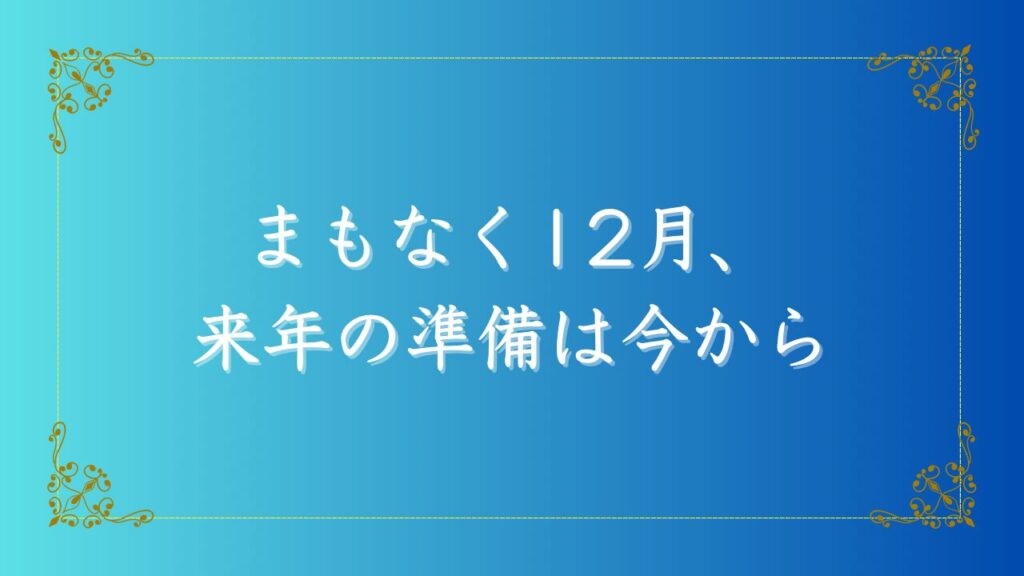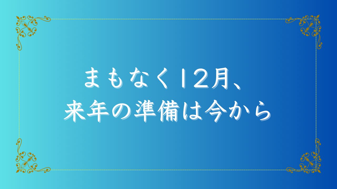 特に、来年を良い年にしたいと願うなら、その準備は「今」から始めるのが吉です。