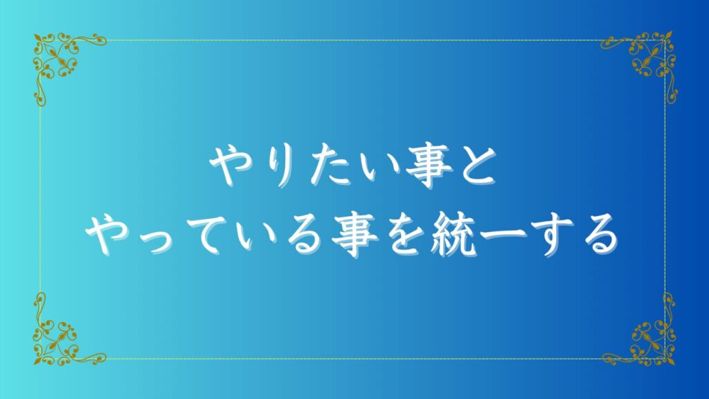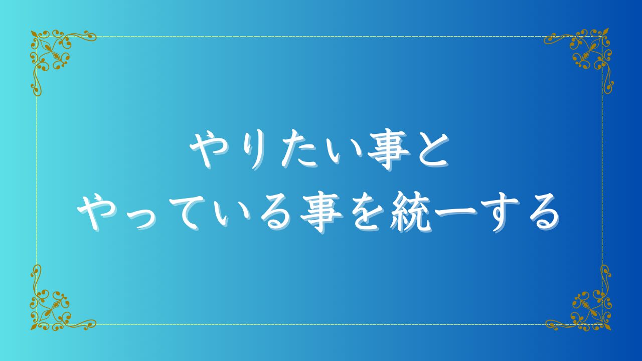 やりたい事とやっている事を統一する、たったそれだけで人生の速度が変わります。