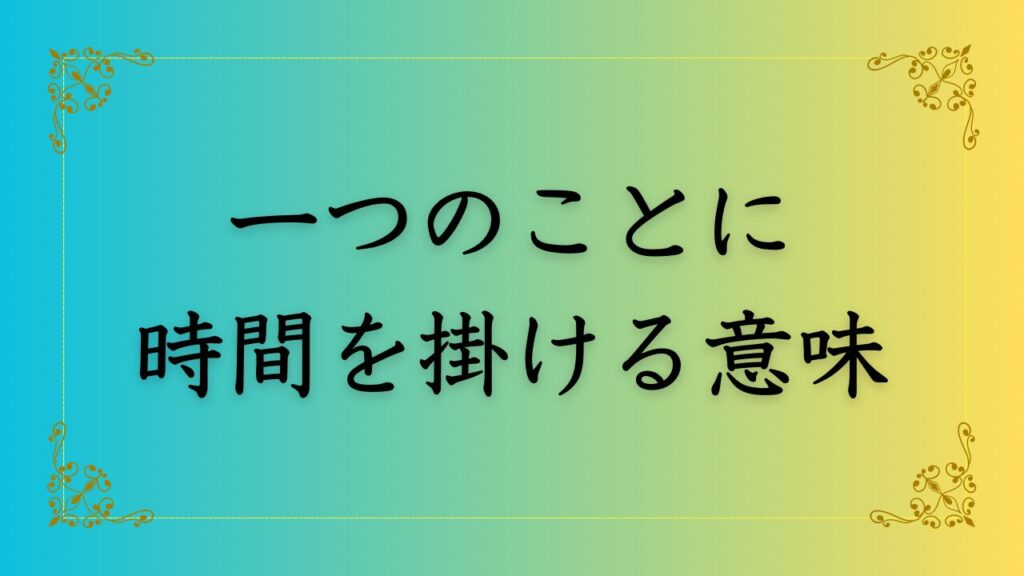 一つのことに時間を掛けていく意味は、本質的にそのものを身に付けるためです。