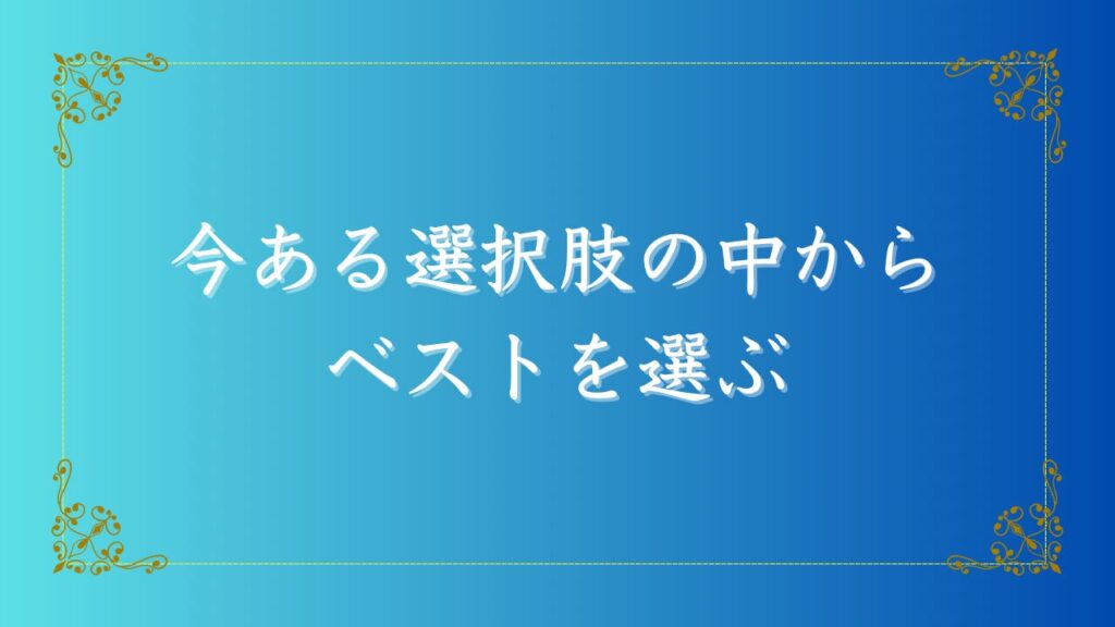 わたしたちが生きる上で、最も効果的な行動は、今、目の前にある選択肢の中から、その時点でのベストを選ぶことです。