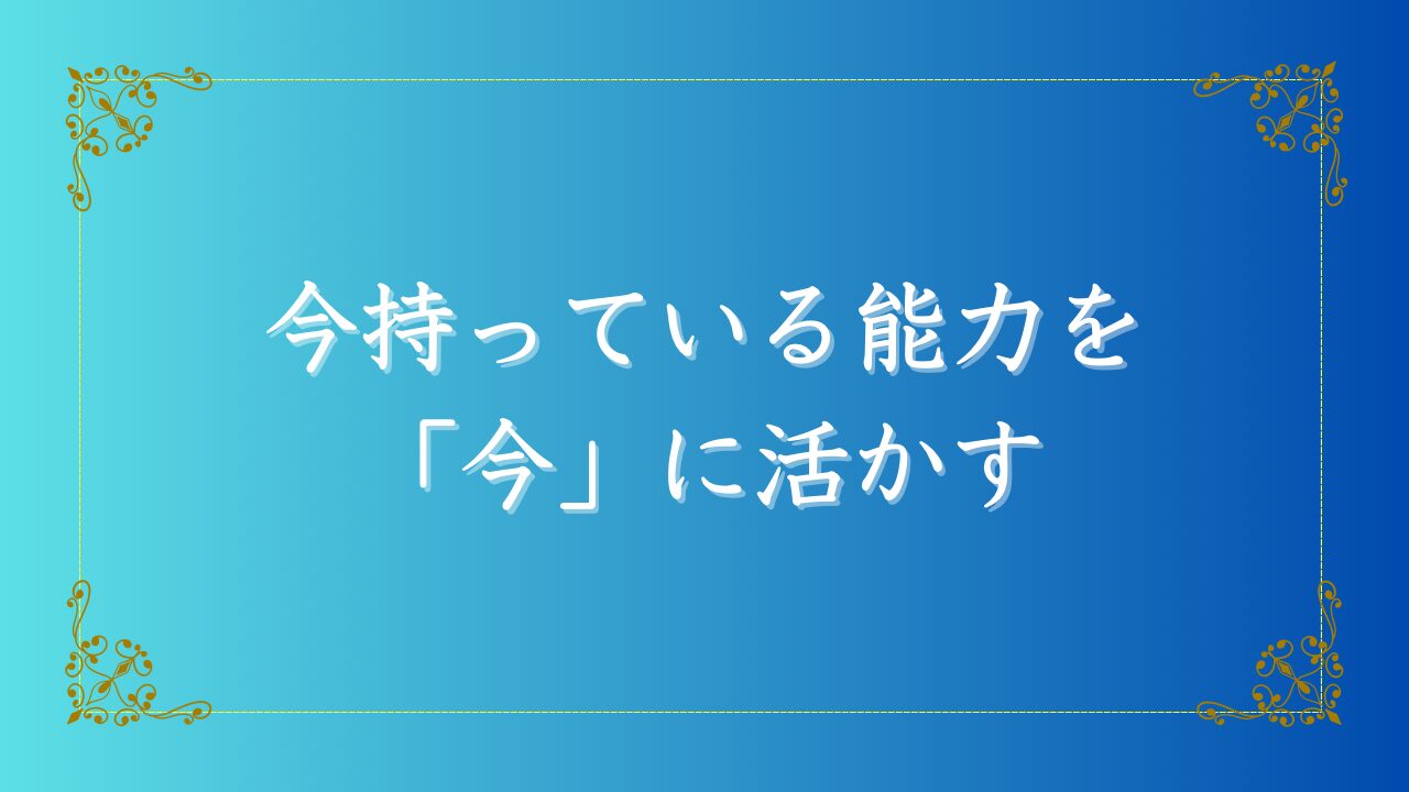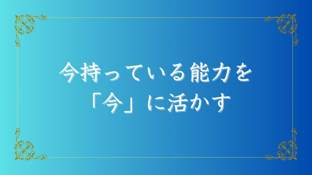 今のあなたが持っている能力を、未完成のまま「今」この瞬間に活かす決断をしてください。