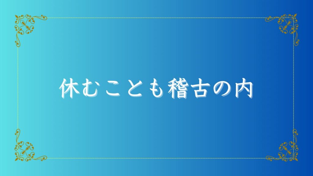 休むことも稽古の内だと理解し、賢く休むことこそが、あなたの成長をたゆまず継続させるための、最も重要な技術です。