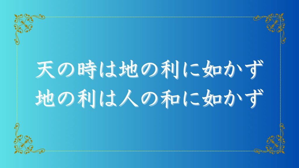 天が味方するような運勢であっても、地の利という環境の有利さには及ばない。