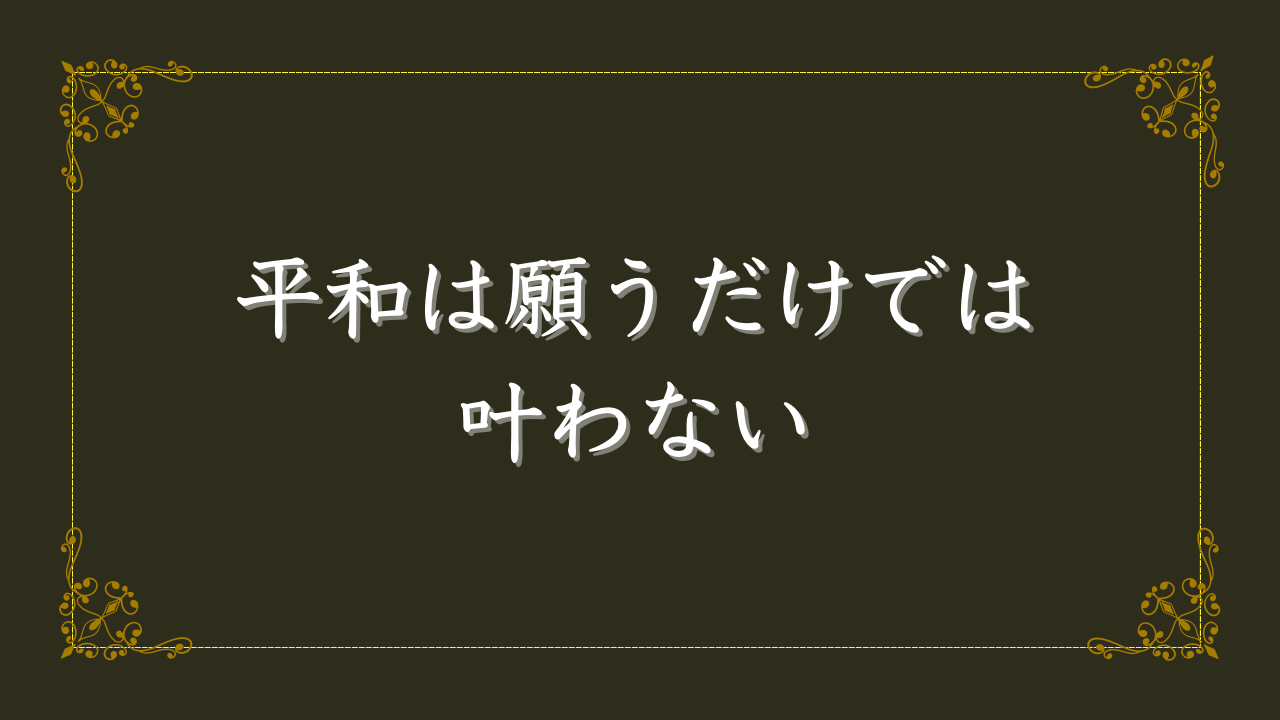 その覚悟を持った一人ひとりの立ち姿が、結果としてこの世界を平和に変えていく確かな力になります。
