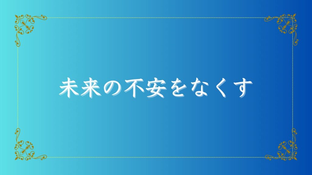 未来の不安は誰にでも訪れるものです。仕事、人間関係、お金、そして健康。