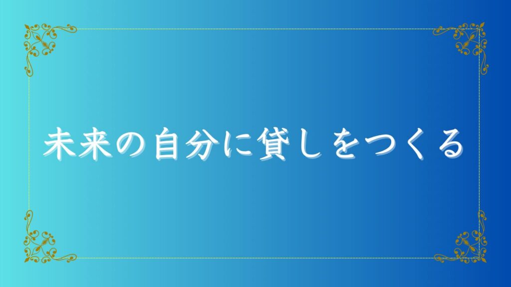未来のあなたが、その貸しを何倍にもして返してくれると信じてください。