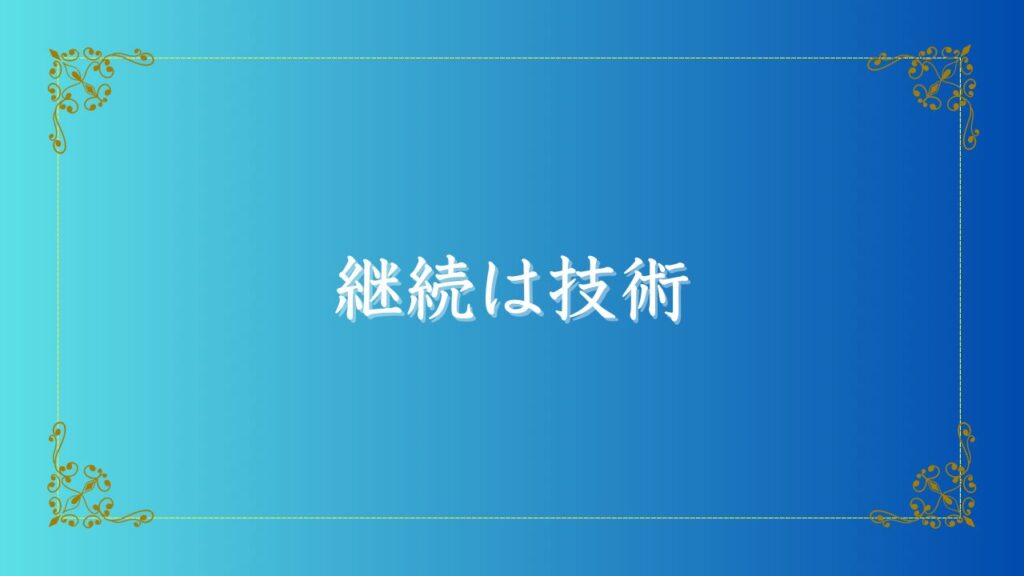 継続とは、特別な才能ではなく、実は誰でも身につけられる「技術」なのです。