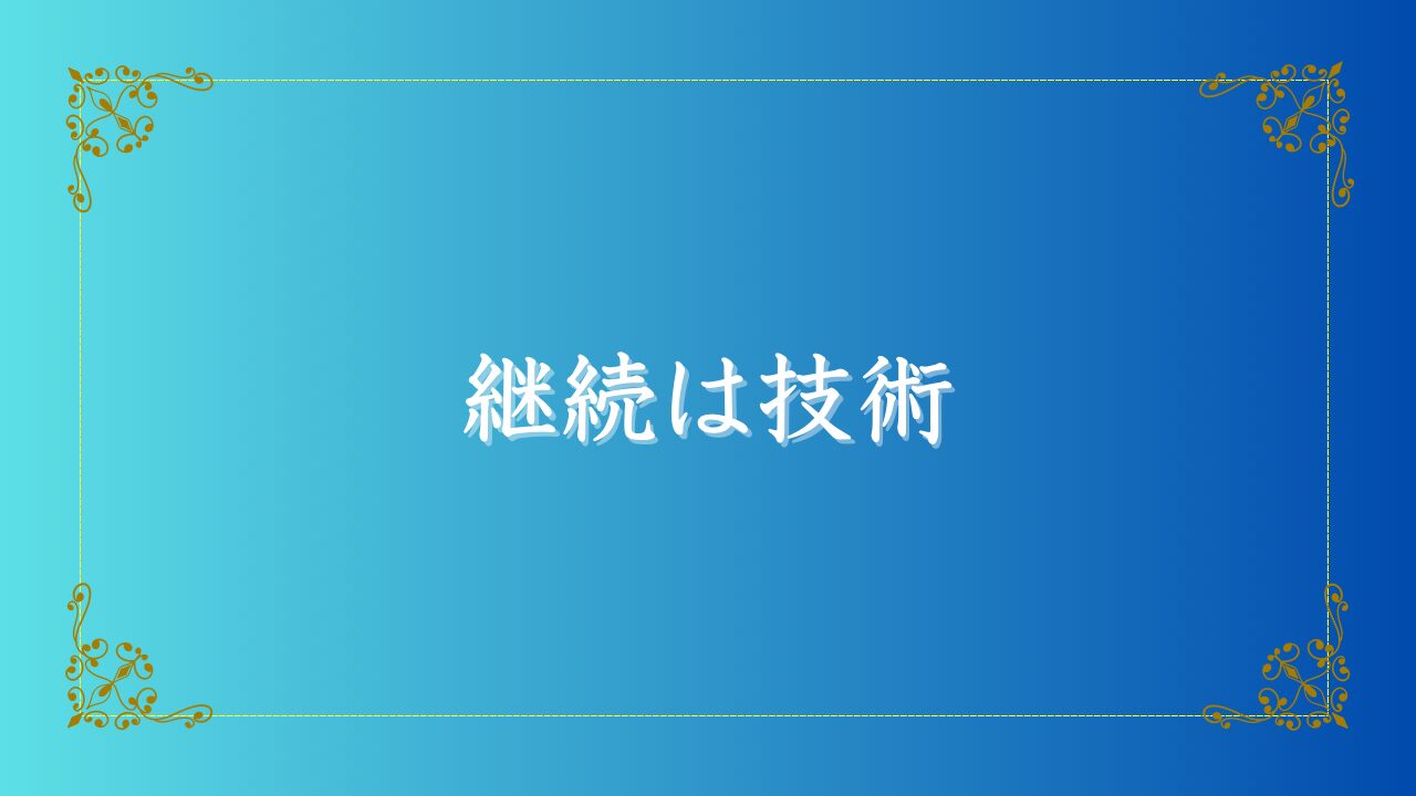 継続とは、特別な才能ではなく、実は誰でも身につけられる「技術」なのです。