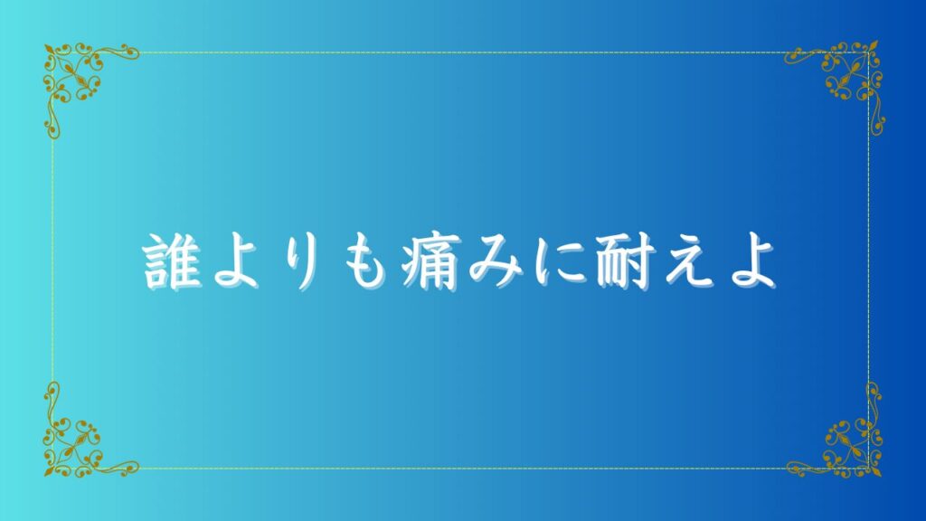 誰よりも痛みに耐えよとは、その先に行くための魔法の言葉のようにも思える大切な言葉です。