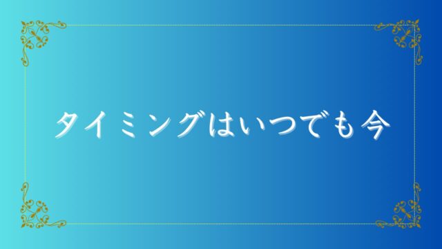もし、あなたが何かを始めようとして「もう少し準備ができてから」「完璧なタイミングを待ってから」と考えているなら、それは機会を先延ばしにしているだけかもしれません。